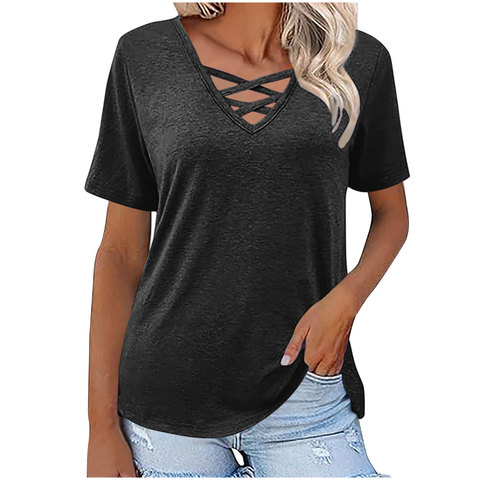 2025春新着レディースVネックルーズ半袖Tシャツ人気カジュアルファッションヨーロッパ/米国市場独立サイト