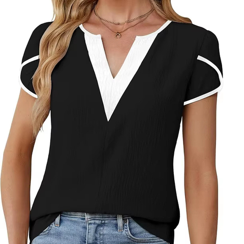 2025เสื้อยืดคอวีทรงหลวมสำหรับผู้หญิงคอลเลคชั่นฤดูร้อนฤดูใบไม้ผลิขายดีเสื้อผ้าแฟชั่นข้ามพรมแดนสำหรับยุโรป/ยุโรป